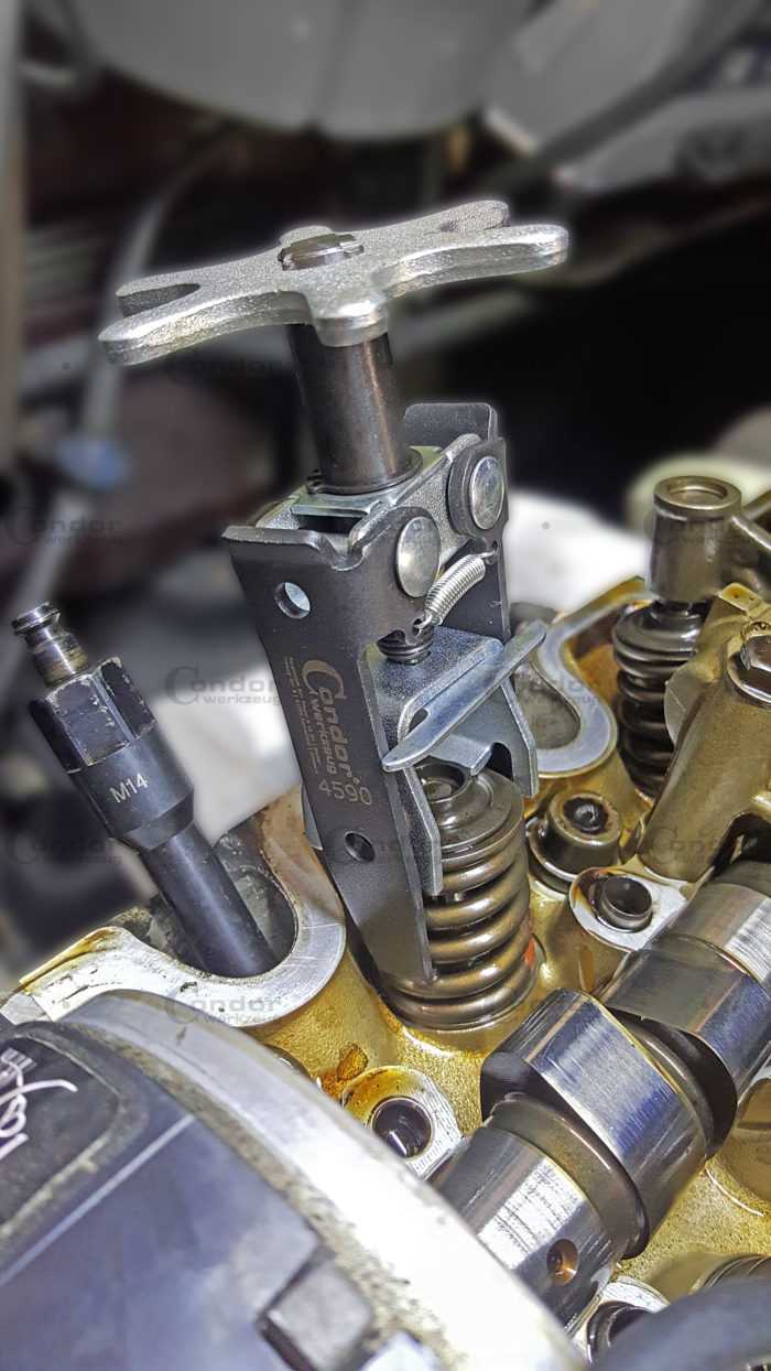 möjliggör utbyte av Ventilfjäder och Knaster utan demontering av Cylinderhuvud