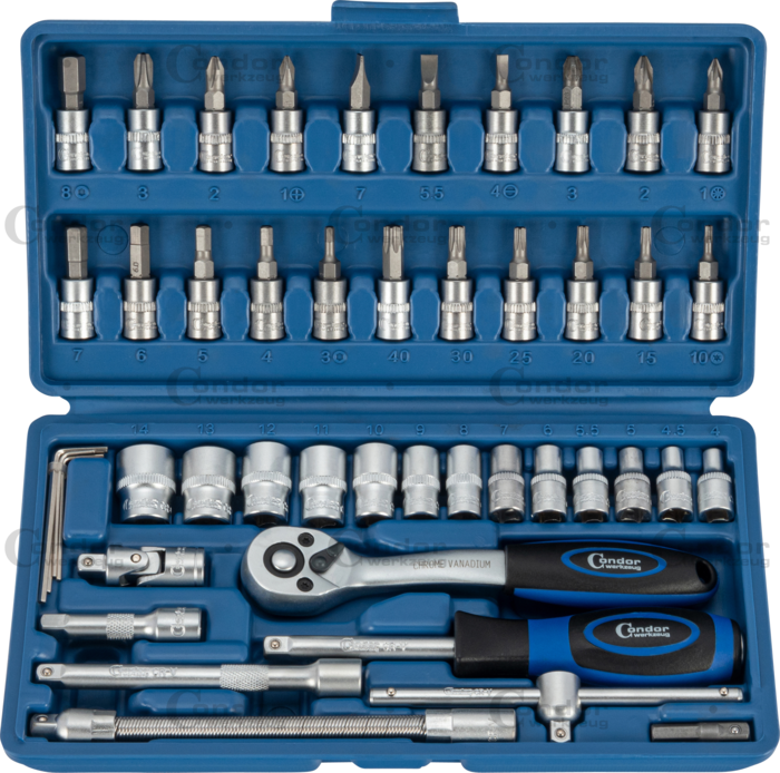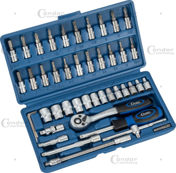 Hylsa Set, 46 delar., 1/4", 6-kant 4-14 mm