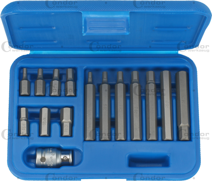 Hylsbit set, 15 delar, 1/2", insex 4–12 mm används för arbete med insexskruvar där hög kraftöverföring och stabil infästning krävs.