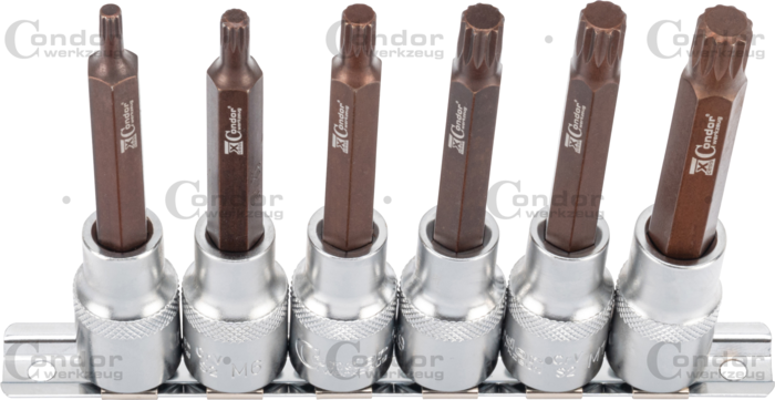 Hylsbit Set, xcess performance, 6 delar, 1/2", spline M5-12 för arbete med spline-skruvar i verkstad och industri.