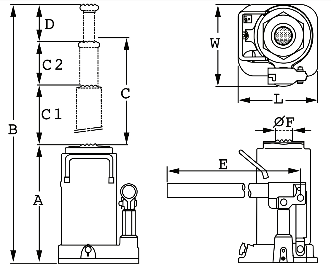 Lyftkapacitet 4 ton. Kompakt konstruktion med spindelförlängare för optimal användning av slaglängden. 2-delat pumphandtag.