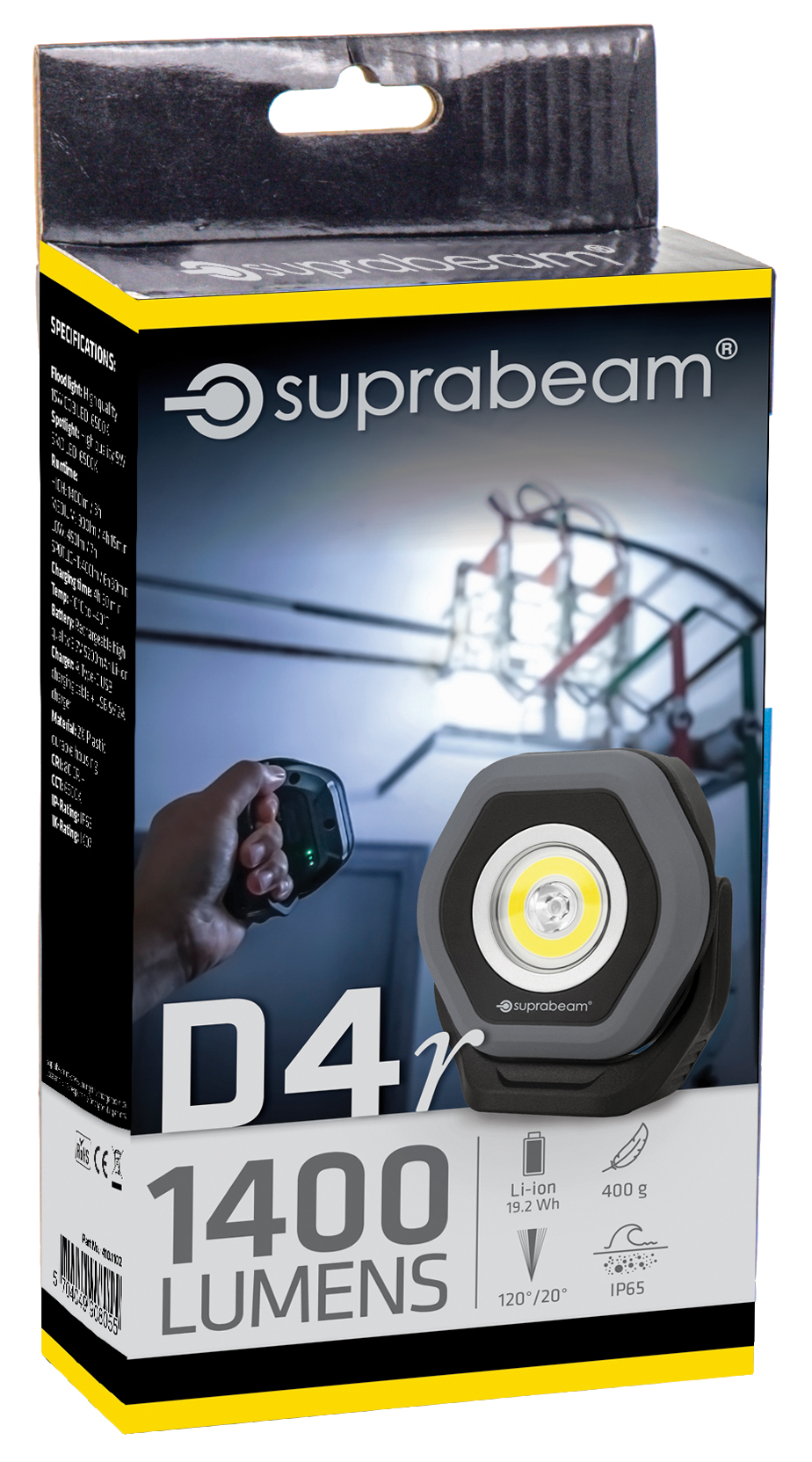 Något större än sin lillebror D2r och ger den dubbla ljusstyrkan. Med 1400 lumen finns det tillräckligt med ljus för att lysa upp de flesta uppdrag, samtidigt som det är en mycket kompakt arbetsbelysning som lätt kan transporteras från jobb till jobb eller monteras i verktygslådan. Tack vare den 180 ° justerbara foten kan ljuset justeras i alla riktningar, och med den magnetiska foten står den stadigt på egen hand eller monterad på en magnetisk yta. D4r har brett flodljus med tre ljusstyrkor och en kraftfull punktbelysning för inspektionsjobb. Ljuset har ett RA-värde på +80 och framhäver färger mycket exakt, vilket gör många jobb mycket enklare. Batteristatus visas i display på baksidan av lampan och batteriet laddas med en USB C-kabel.