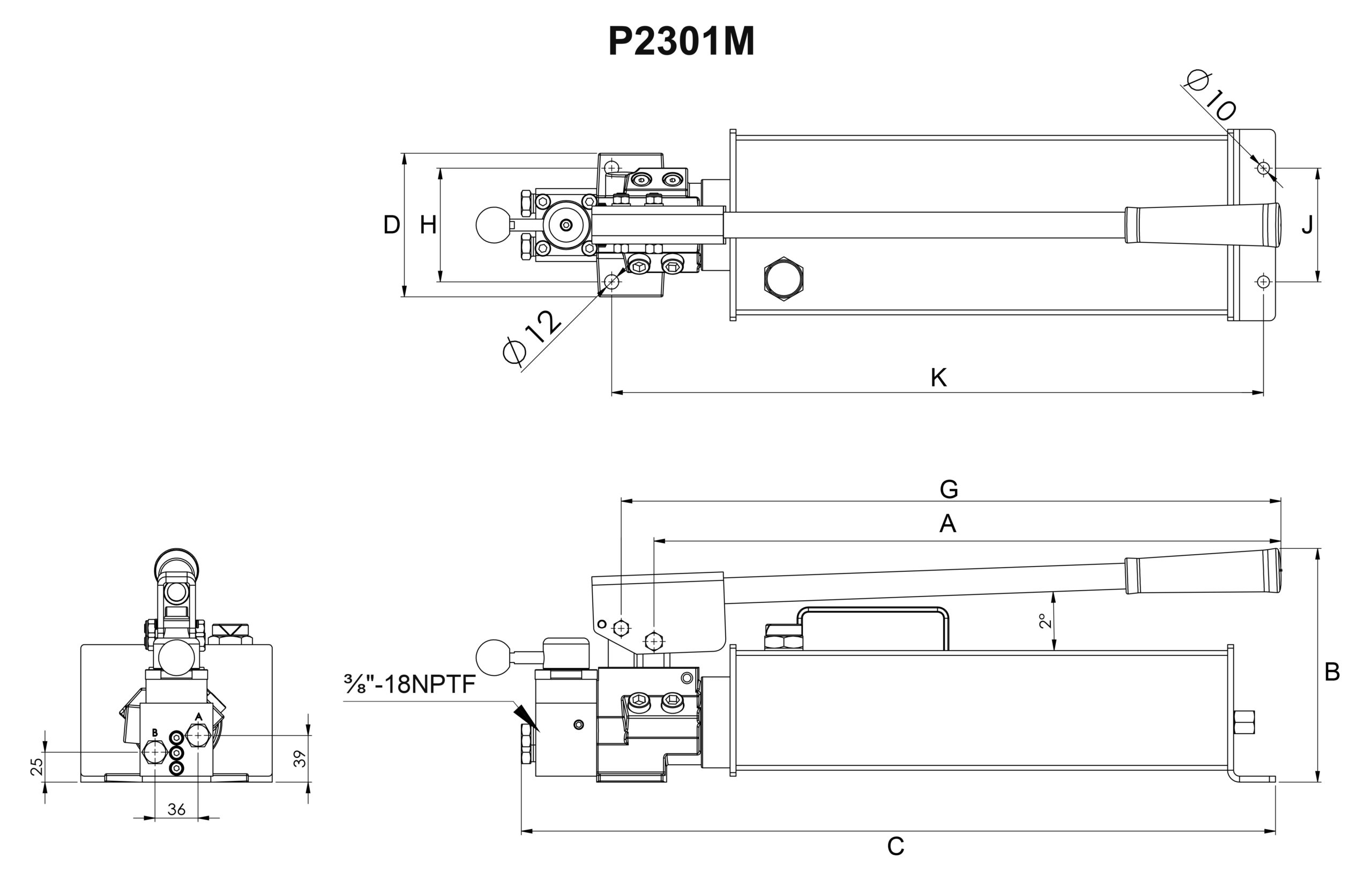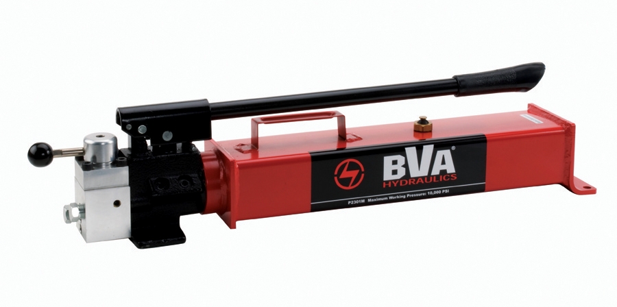 BVA Hydraulics dubbelverknade 2-stegs Handpump med 2,2 liters tank. Passar för dubbelverkande cylindrar eller verktyg med en max. oljevolym på 2200 cm3. Tank i stål med bärhandtag för enkel förflyttning. 2-stegs pump som underlättar för operatören att pumpa. Arbetstryck 700 bar.