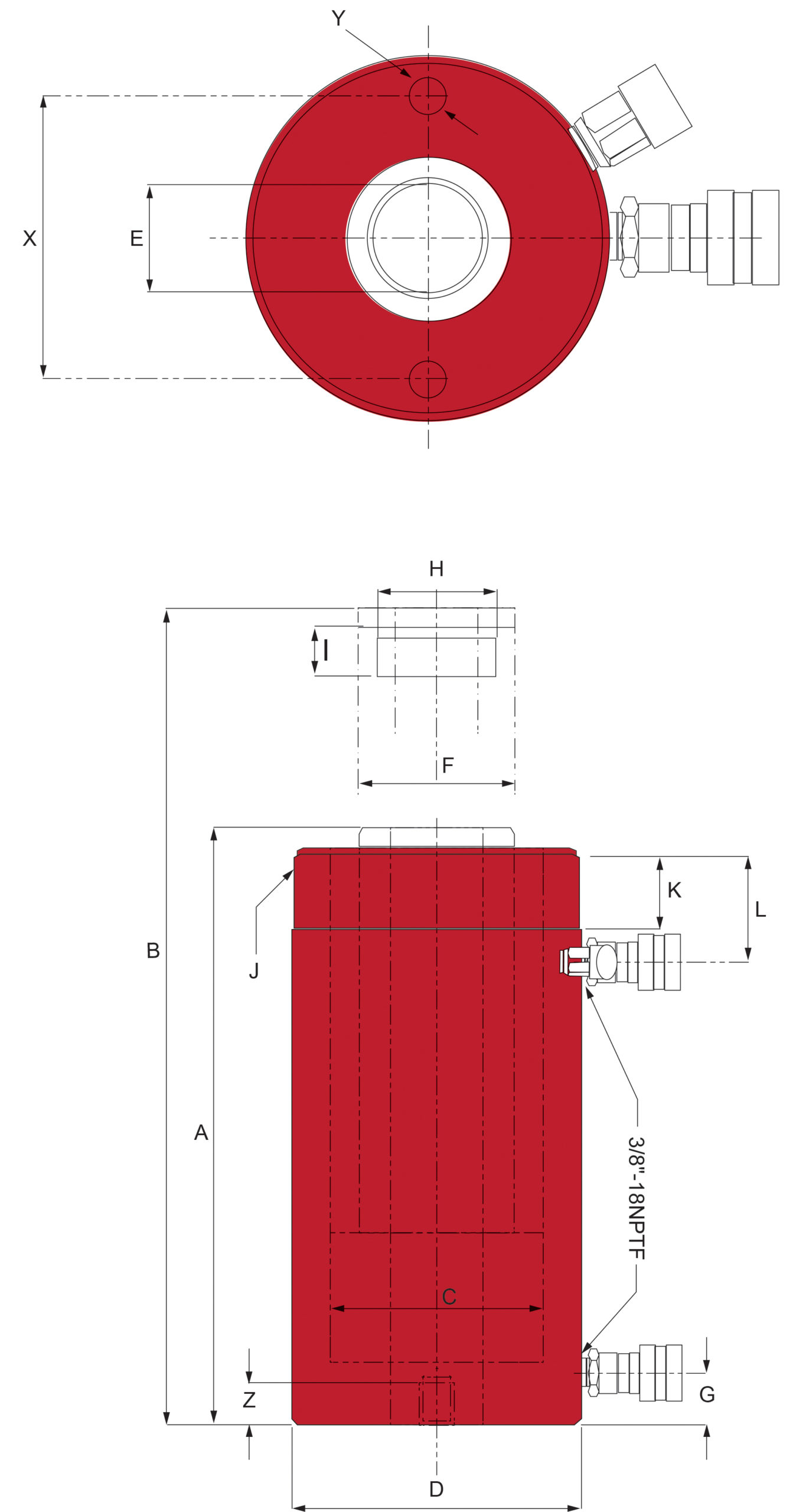 | J Utvändig gänga på cylinderrör Ø | 8 3/8"-12N |