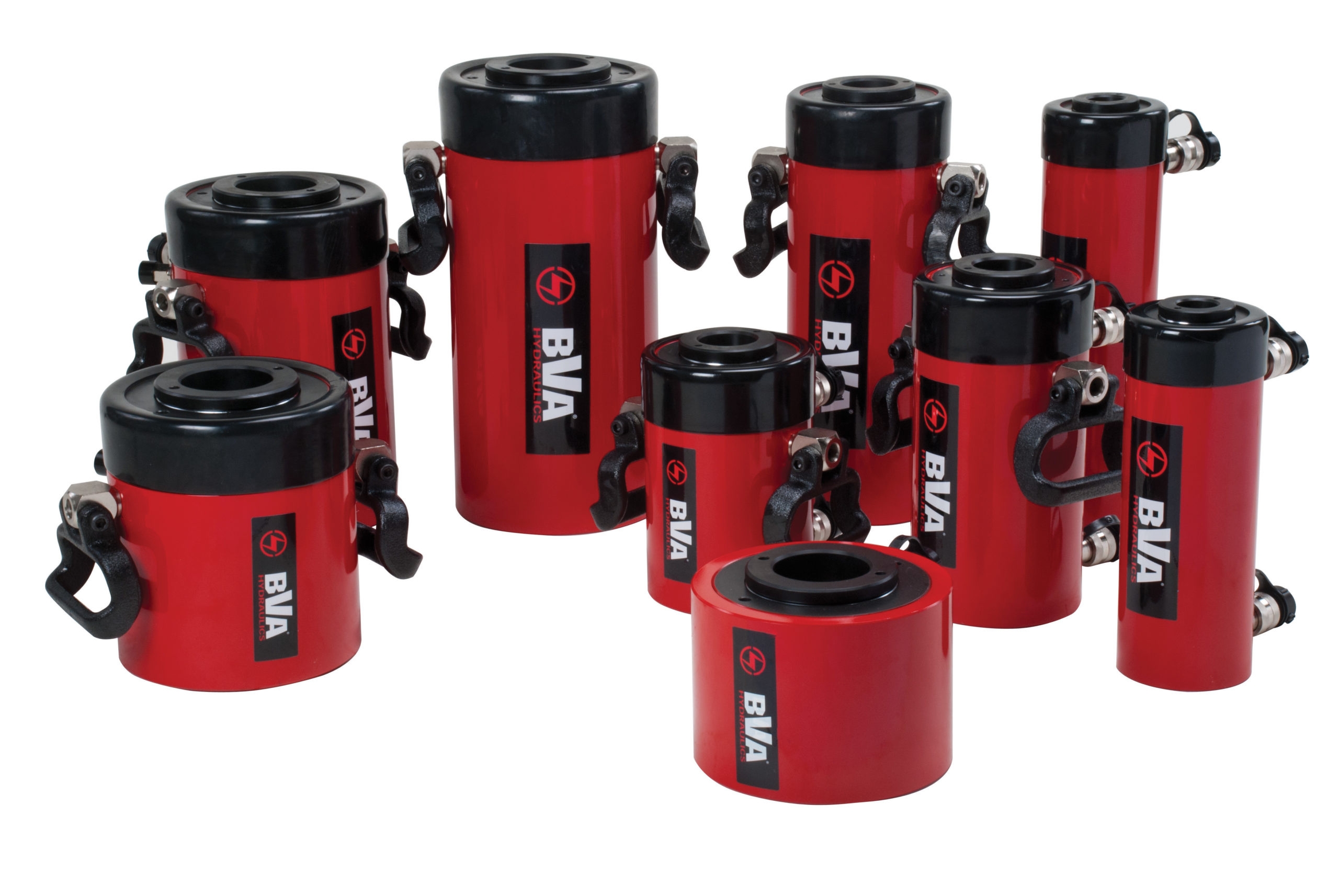 BVA Hydraulics dubbelverkande hålcylinder för i- och urpressning av lager, axeltappar, etc. Kan även användas för lyft.