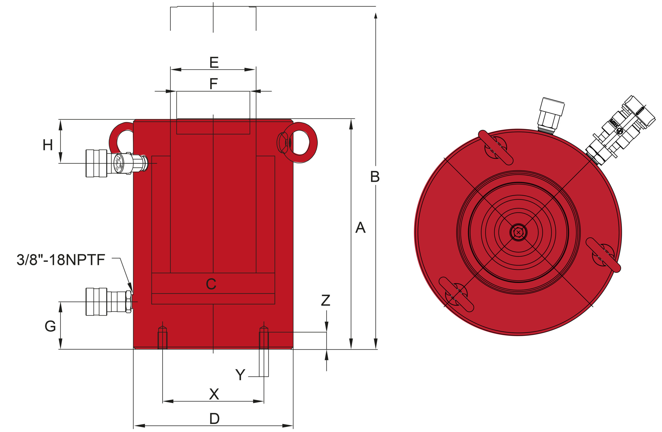| Max cylinder kapacitet Tryck | 205,0 ton |