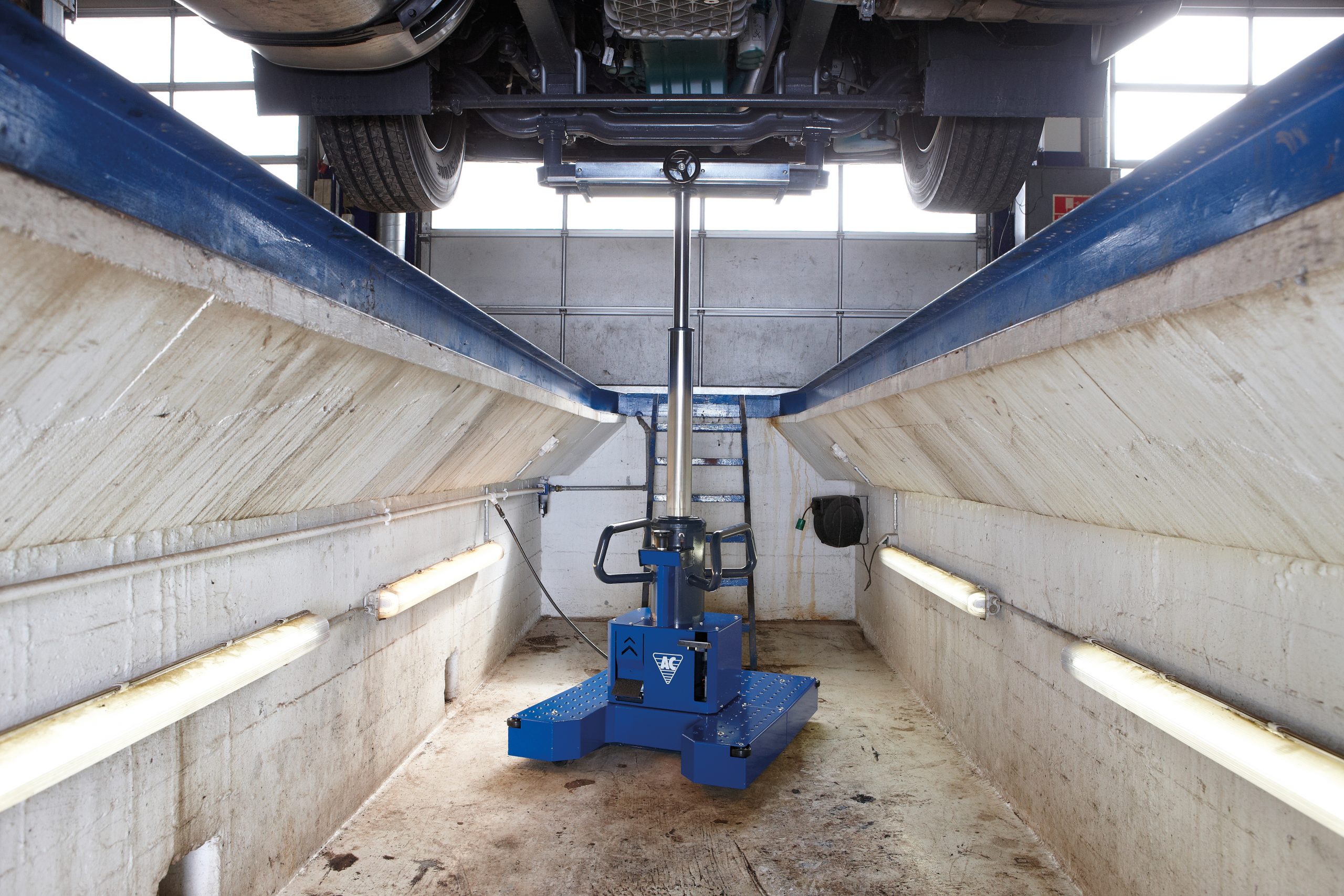 Flexibel golvdomkraft som kan användas både i verkstadsgropar och under fordonslyftar. Passar till alla vanliga lyftarbeten. Perfekt för demontering och återmontering av växellådor. Inbyggd manuell fotpump för enkel och exakt justering. Snabb och exakt lufthydraulenhet med snabbgående kolv. Fjäderspänt hjulstöd förhindrar oönskade rörelser när mer än 800 kg lyfts. Dödmansgrepp och övertrycksventil ger högsta möjliga säkerhet.