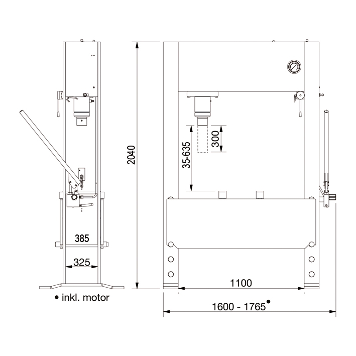 Fotmanövrerad dubbelverkande pneumatisk höghastighetsmodell som låter användaren ha båda händerna fria för snabb och exakt positionering av objekt. Sidledes flyttbar cylinder. Med 300 mm slaglängd för krävande uppgifter. Bred och helsvetsad ram och pressbord säkrar stor flexibilitet. Vinschmanövrerat pressbord. Inbyggd säkerhetsventil. Avtagbar trycksko för montering av olika pressdon. Inkl. 2 riktstäd.
