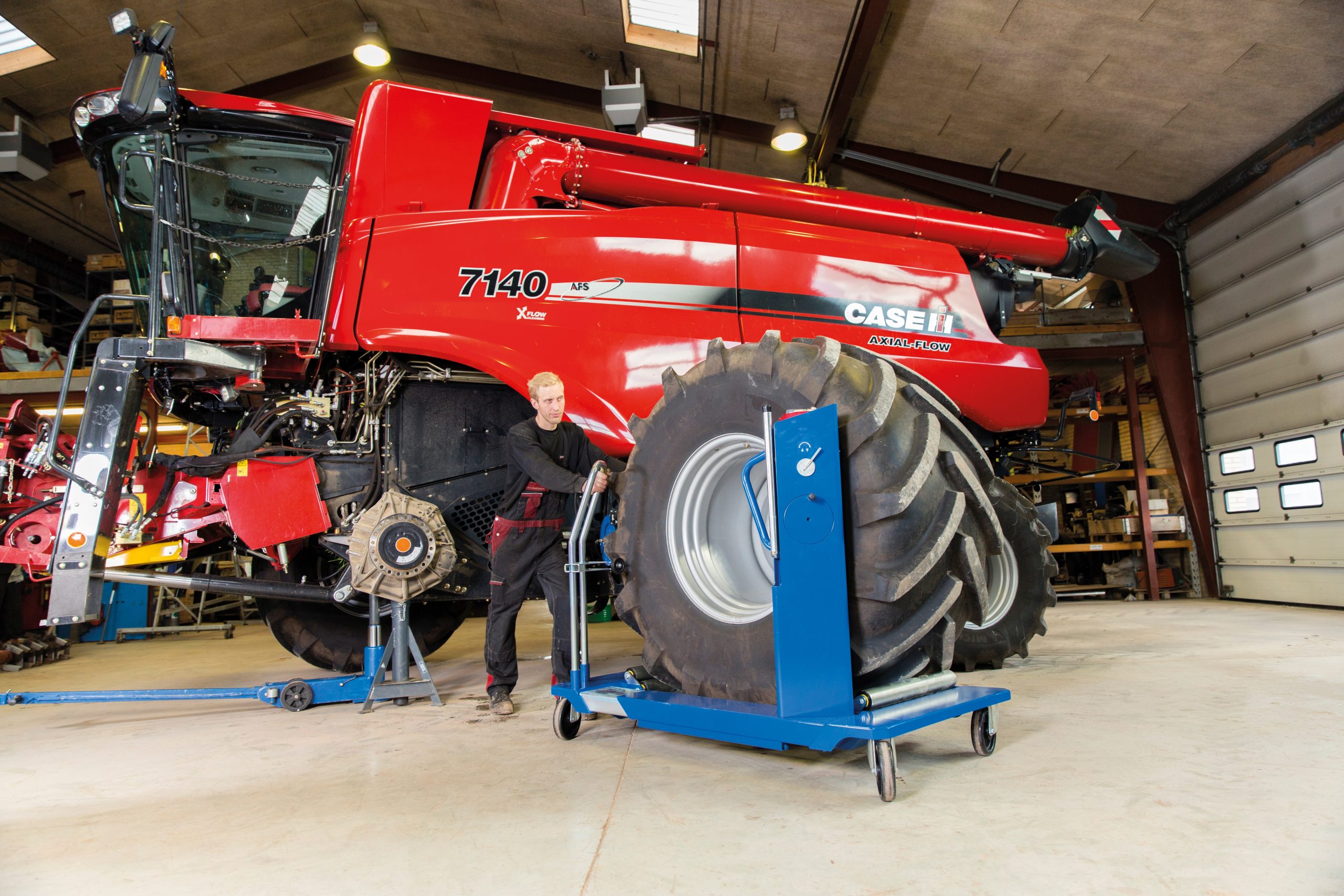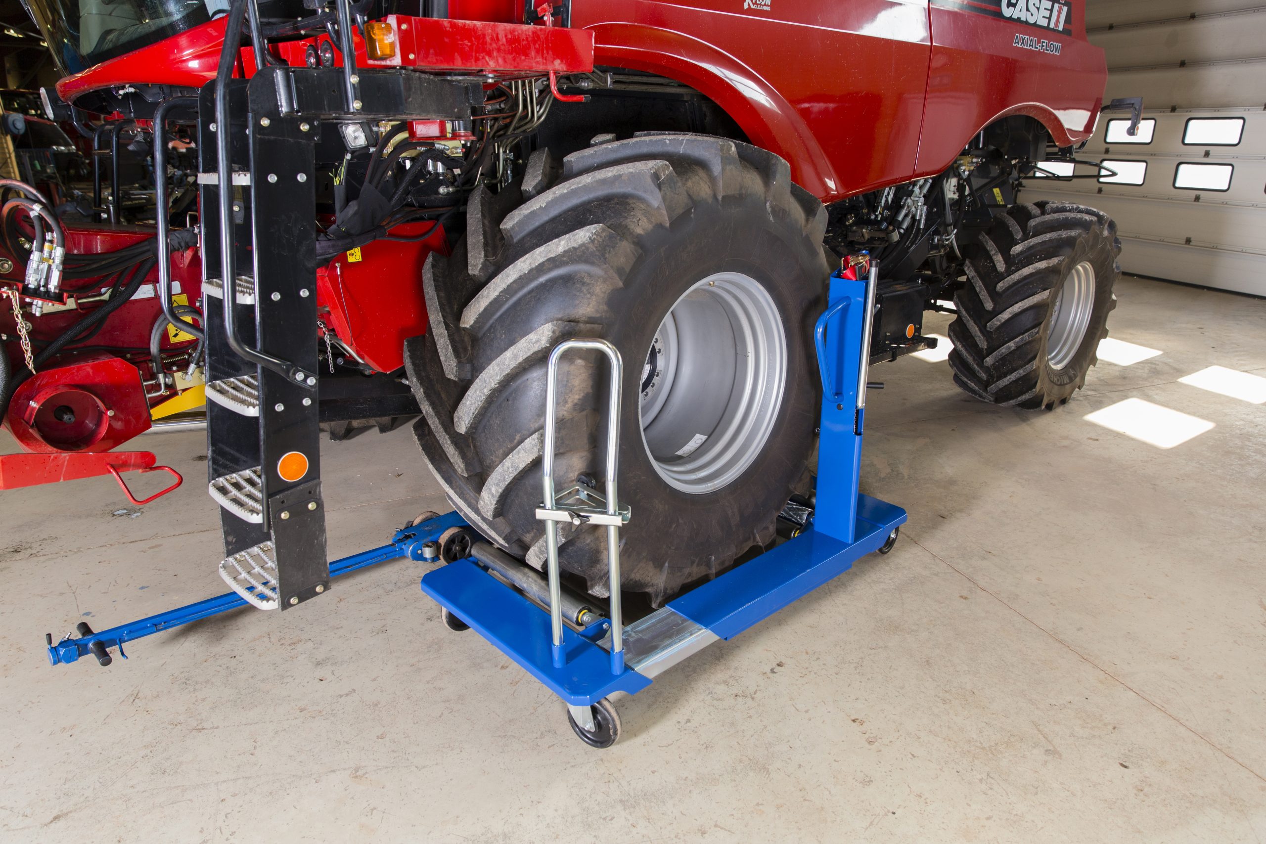 Enkel hantering av världens största hjul. Två robusta handtag och 4 st 200 mm pivåhjul gör den enkel att manövrera i verkstaden. En enkel brytare gör det mycket enkelt att öppna och stänga skänklarna. Hjulet kan säkras med ett spärrband för maximal säkerhet. Hjulstorlekar: min. Ø 1000 mm – max Ø 2400 mm. Hjulbredd: max 1200 mm. Optimerad förpackning för enkel leverans och minskad fraktkostnad.