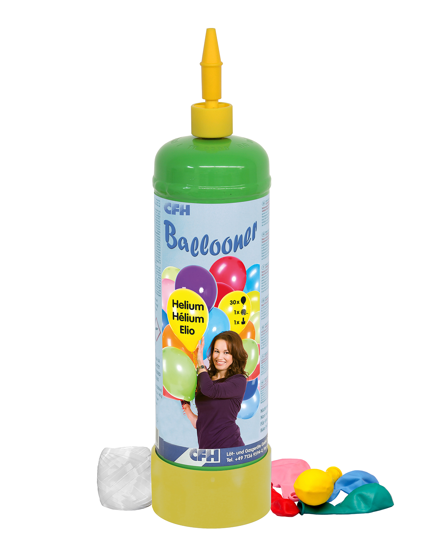 Inkluderar 2,2 liters heliumflaska, 30 ballonger, ballongsnöre och dispenseringsventil