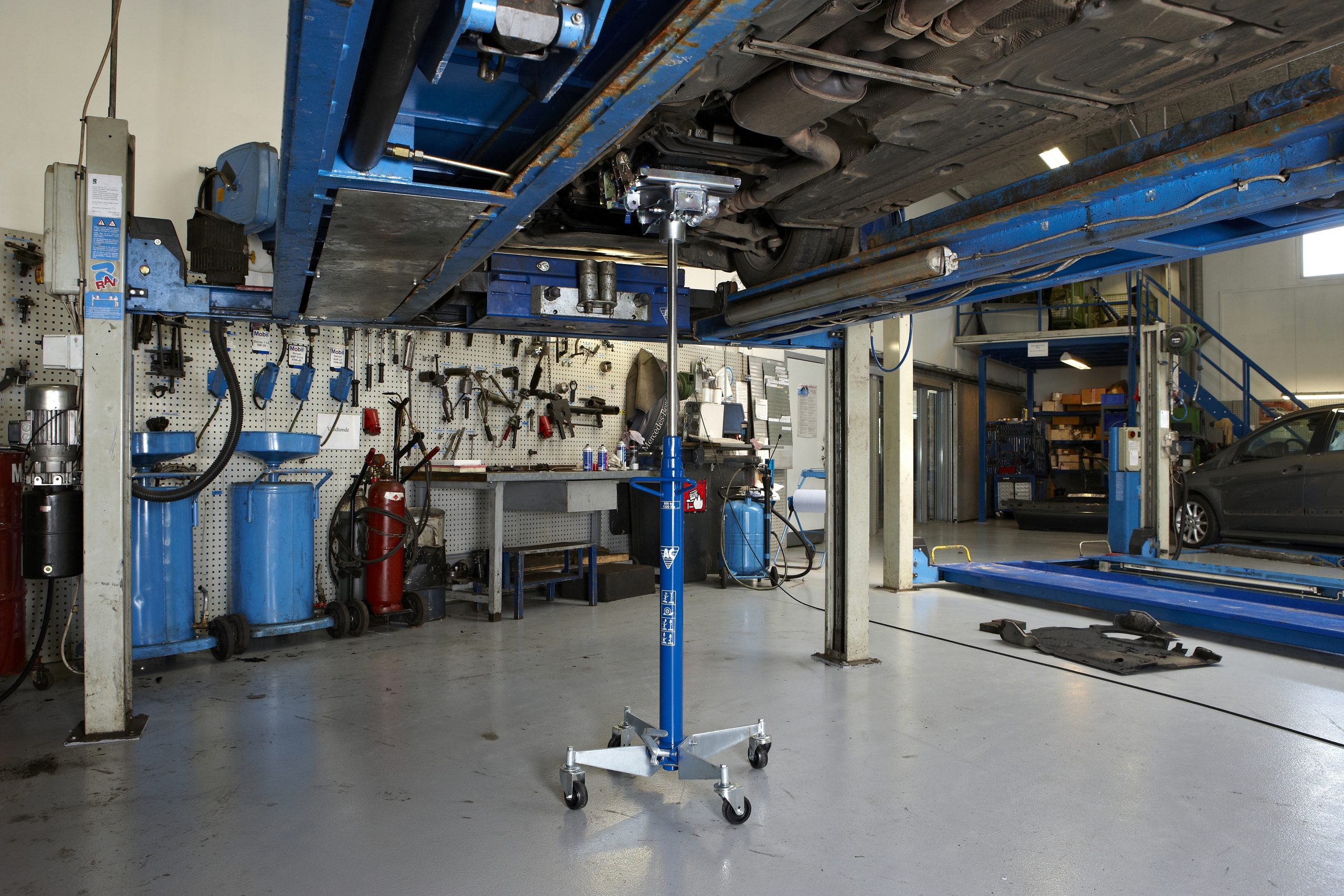 Fotbetjänad pump frigör båda händerna till arbetet. Steglös reglering för precis positionering. Handmanövrerat dödmansgrepp ger optimal säkerhet vid sänkning. Galvaniserad krona och ben. Inbyggd säkerhetsventil skyddar mot överbelastning. Stora och solida svängbara hjul ger optimal stabilitet och rörlighet. Hårdförkromad kolvstång och pumpkolv säkrar lång livstid. Kan även användas till många andra lyftuppdrag som t.ex. montering av fjädrar, bränsletankar, avgassystem osv.