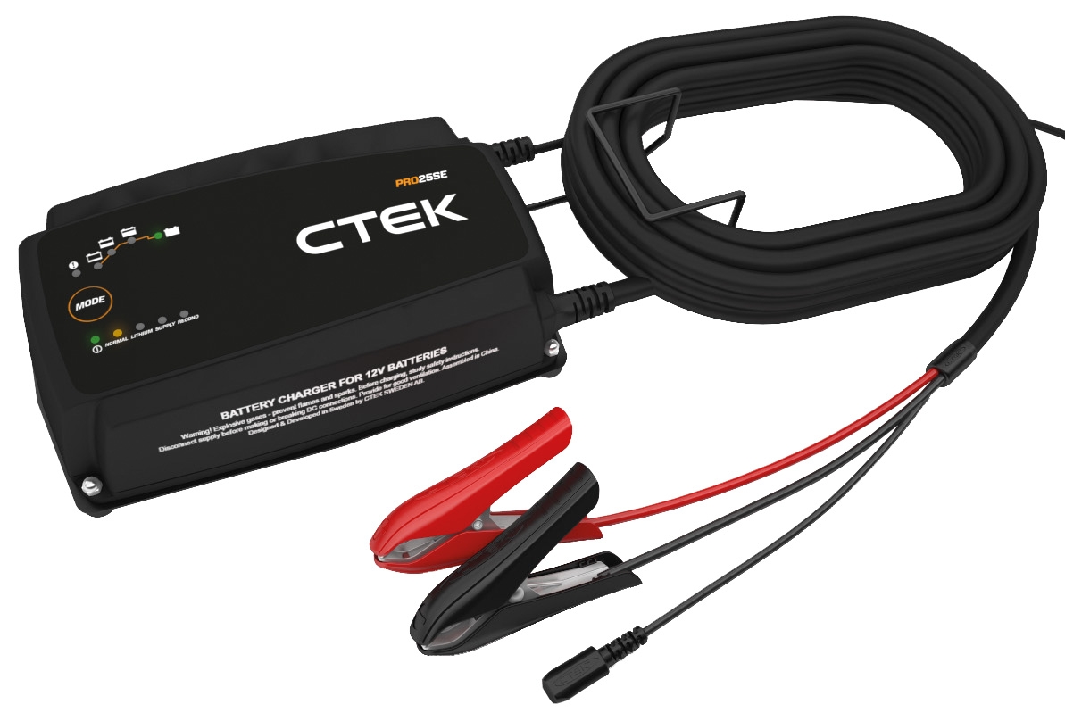 PRO25SE är en innovativ, mångsidig och väldigt effektiv 25 A batteriladdare och strömkälla. Den levereras med 6 meters laddkablar, så att du kan montera enheten på billyfts pelare eller i jobbstationen. Genom att kombinera kraft och avancerad teknik med säkerhet och kompabilitet med alla 12V-fordonsbatterier, inklusive litiumjonbatteriet (LiFePO4), är det den bästa lösningen för batteriladdning i den professionella verkstaden.