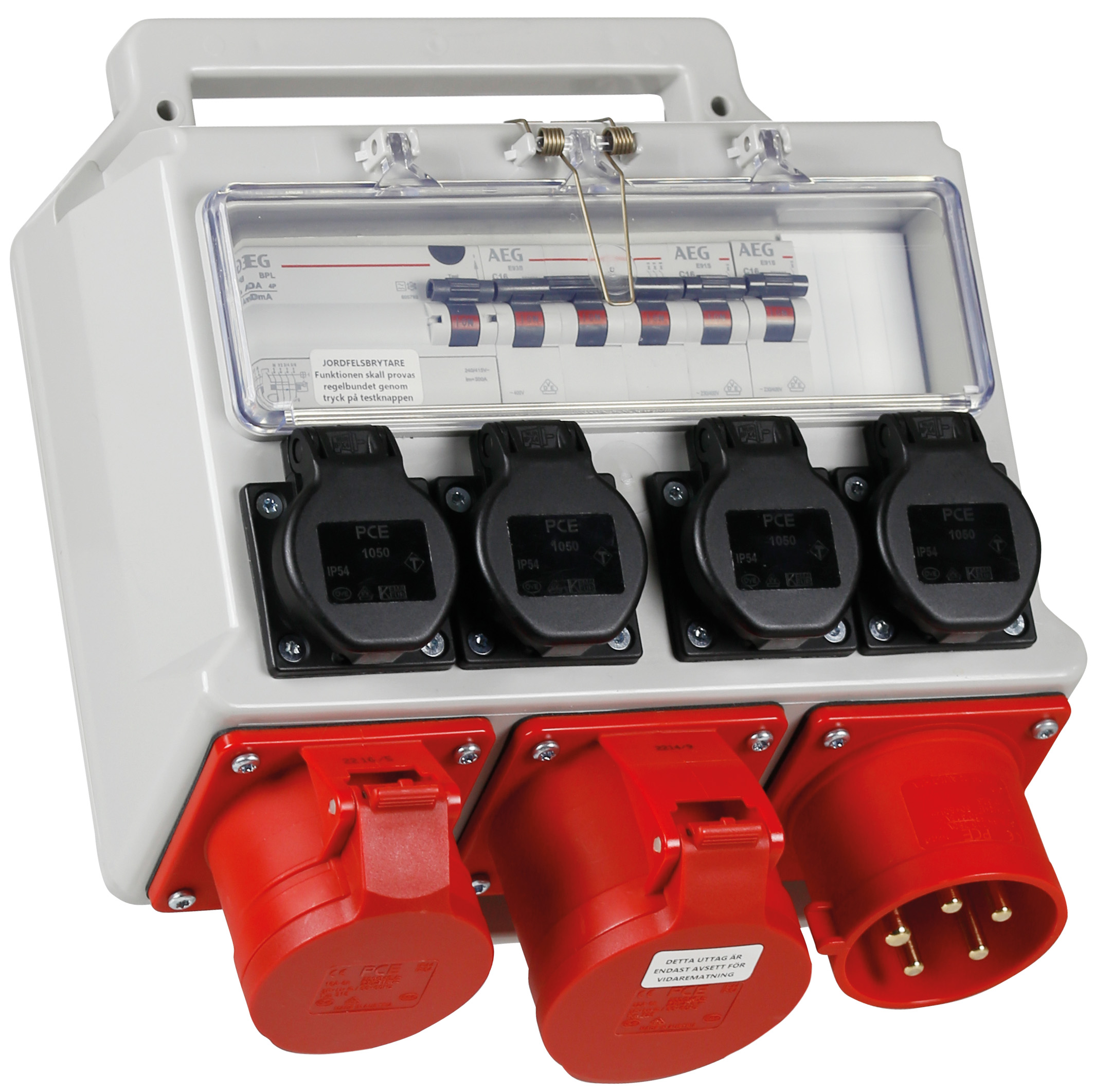 Uttag 16 A / 230 V: 4 st avsäkrade 2+2