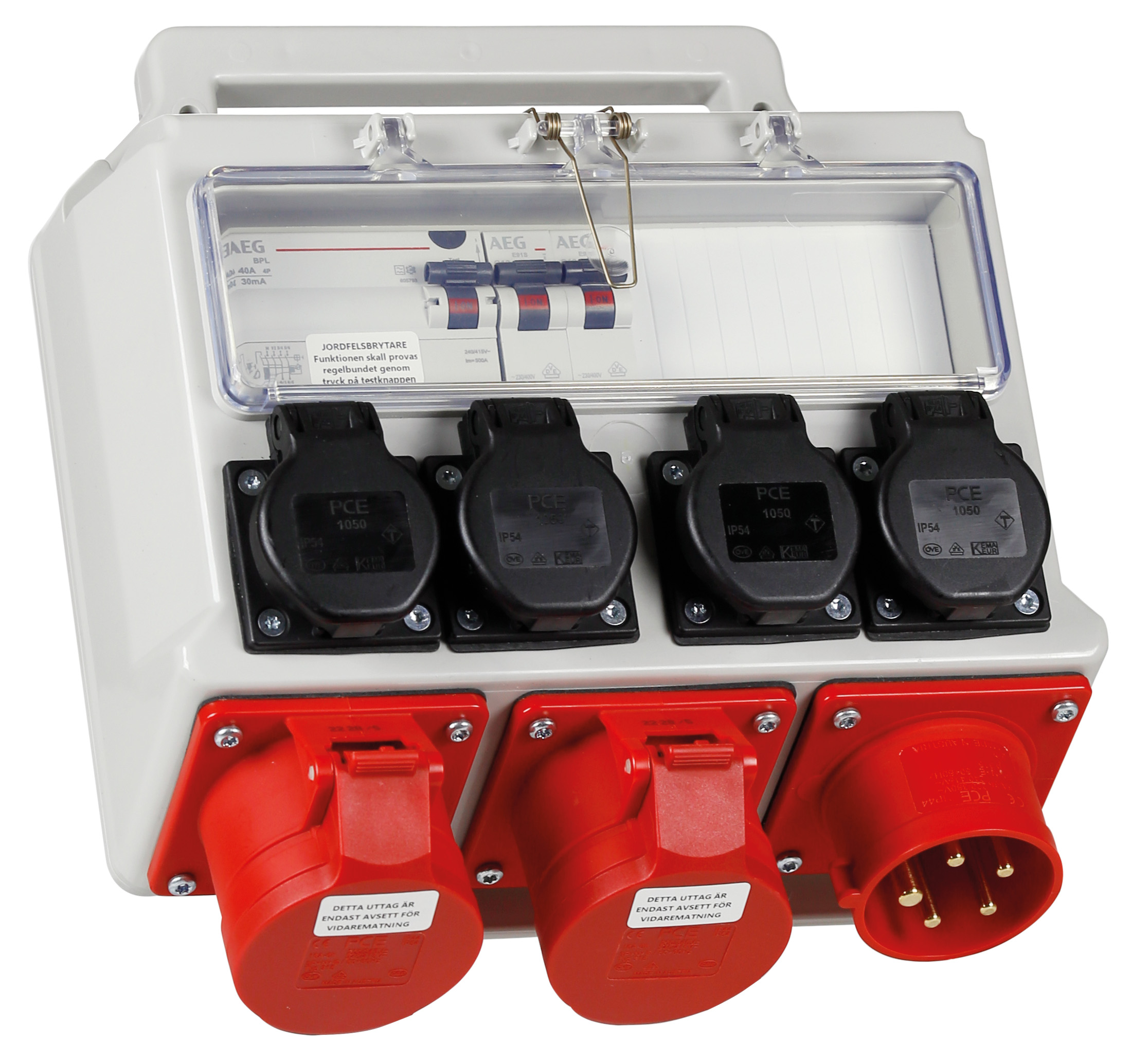Svensktillverkad byggcentral i hög kvalitet. Godkänd för utomhusbruk. Tillverkad i slagtålig plast. Utrustad med jordfelsbrytare 40A, 30mA .