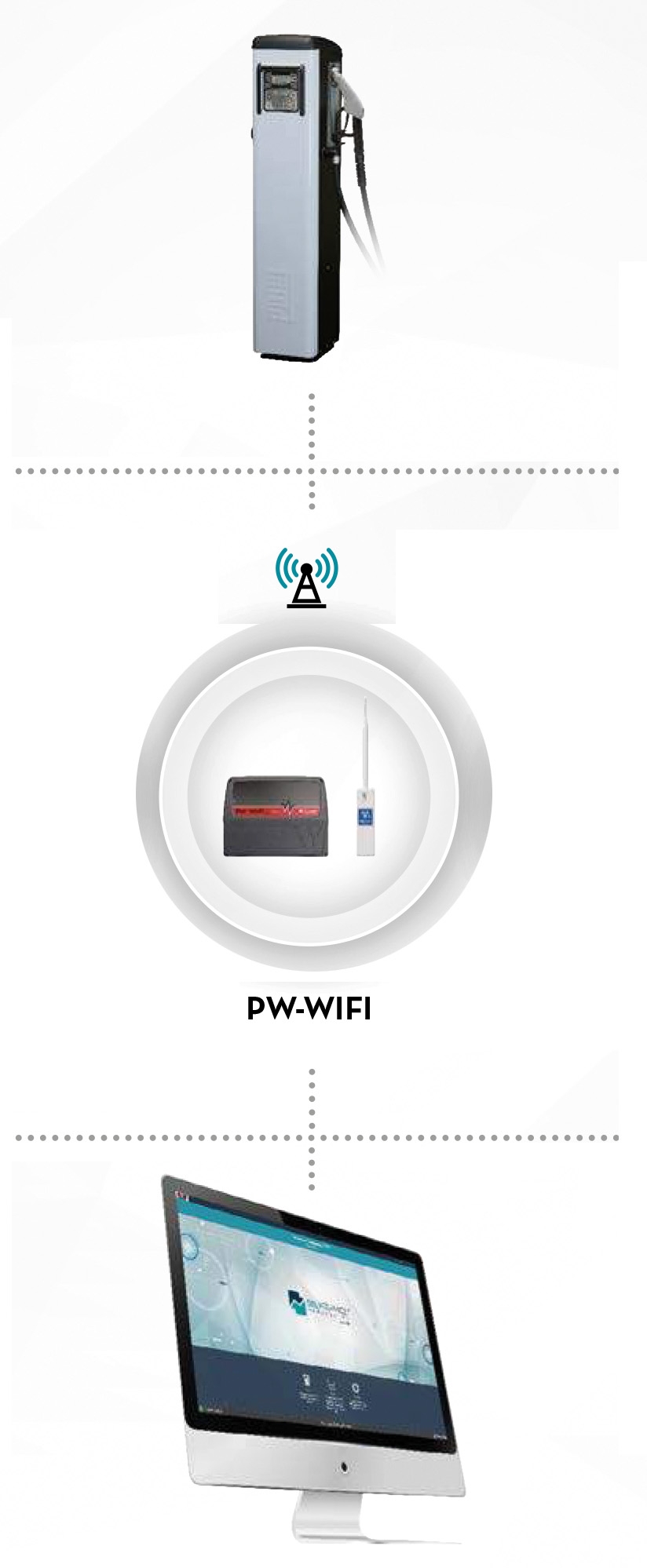 PW-WiFi är en lösning som gör att Piusi-enheter kan anslutas till ett LAN eller Wi-Fi-nätverk och överföra data till Self Service Management 2018 i realtid.