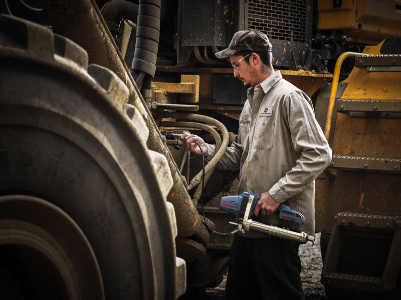 Batterifettspruta 20 volt Li-Ion batteri. 2-stegs pump som säkerställer funktionen även vid kyla. Levereras komplett med 1 st batteri och batteriladdare (230 volt) i kraftig väska.