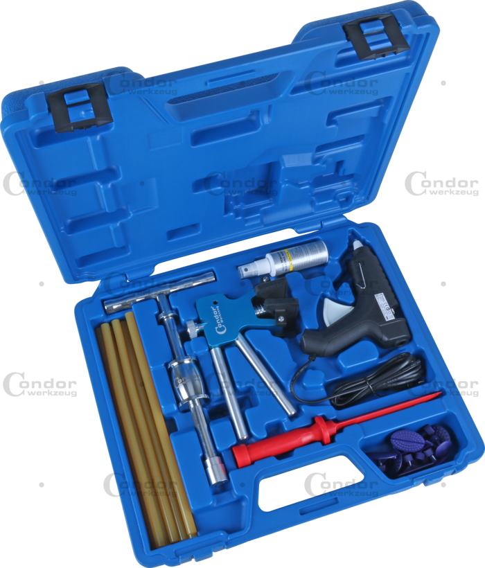 med special buckelutdragningsverktyg , möjliggör mycket skonsam och exakt buckelborttagning: utdragningsmekanismen manövreras genom att pressa ihop två handtag. Verktyget är designat för att ge användaren maximal kontroll över hur mycket kraft som används.