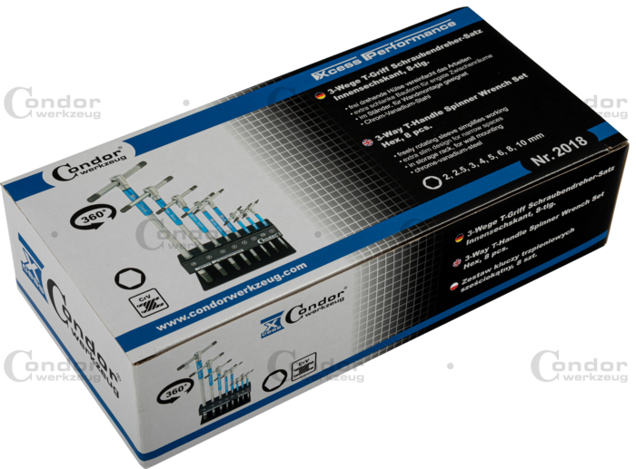 3-Vägs T-Handtagnyckel Set, 8 delar., 6-kant 2-10 mm
