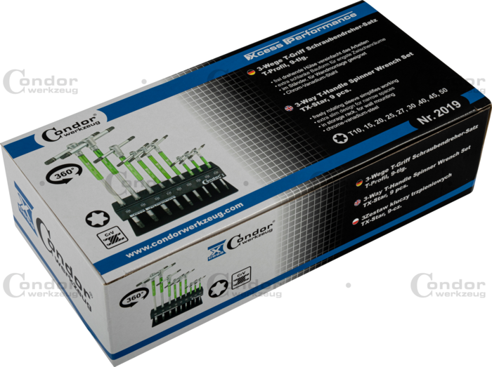 3-Vägs T-Handtagnyckel Set, 9 delar., torx T10-50