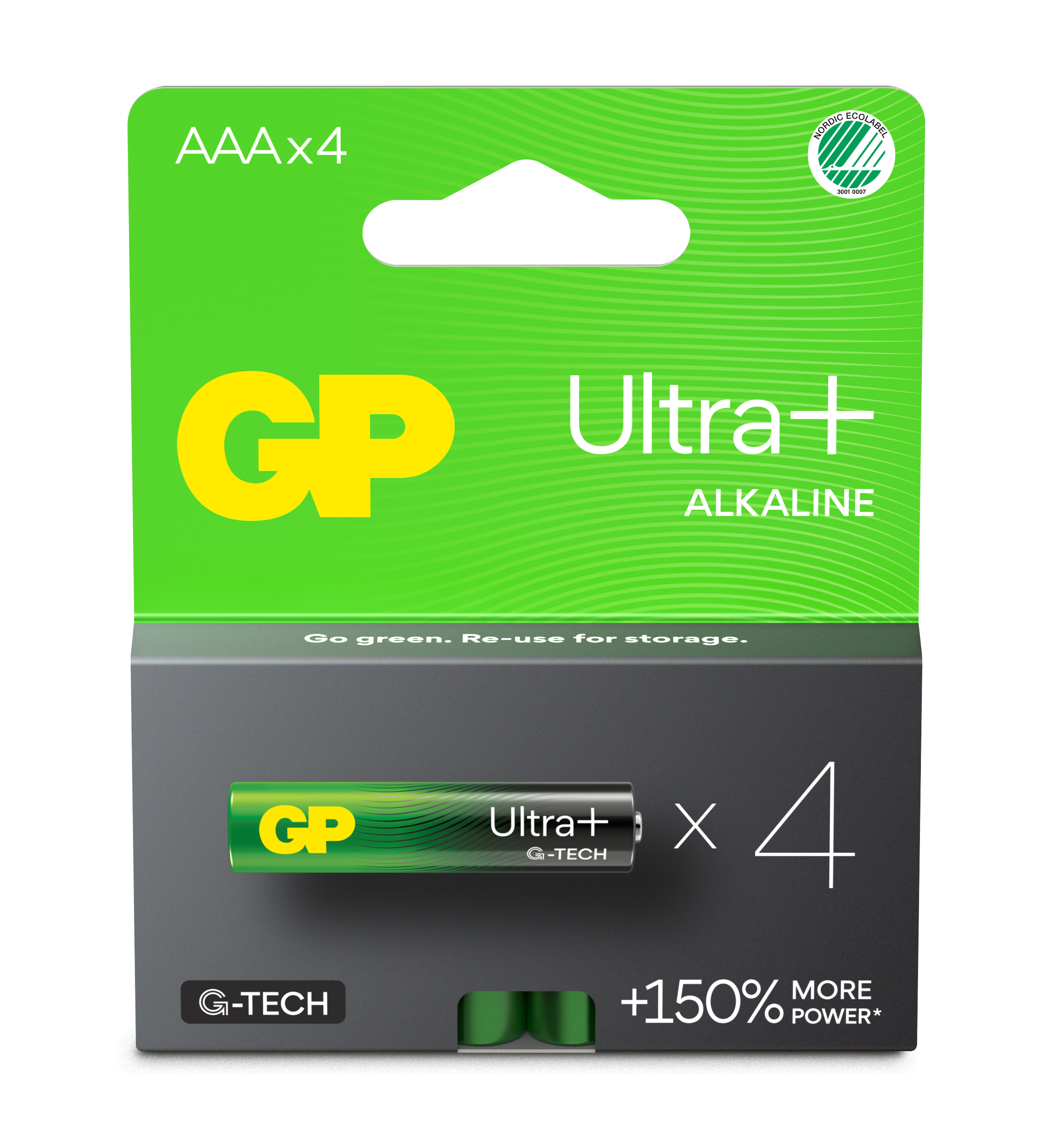 GP Ultra Plus är ett väldigt kraftfullt engångsbatteri, med lång livslängd. Perfekt för fotoblixtar, kameror, spelkontroller, trådlösa möss, leksaker, ficklampor, radiostyrda enheter m.m. Finns i de vanligaste batteristorlekarna: AA, AAA, C, D och 9 V. Lång livslängd. Svanenmärkt.
