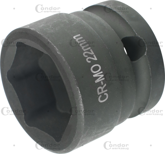 Krafthylsa, 1/2", extra kort, 6-kant 22 mm
