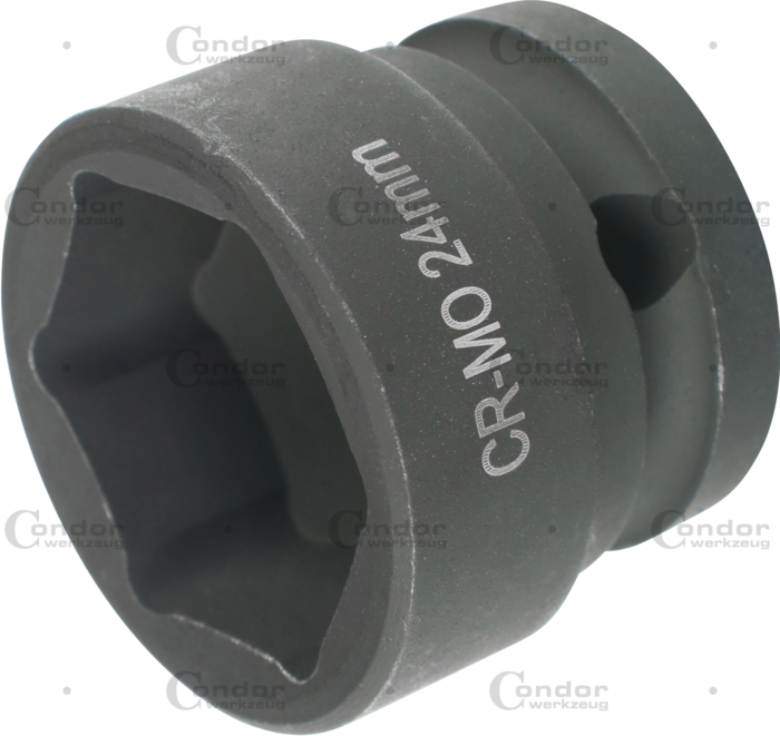 Krafthylsa, 1/2", extra kort, 6-kant 24 mm
