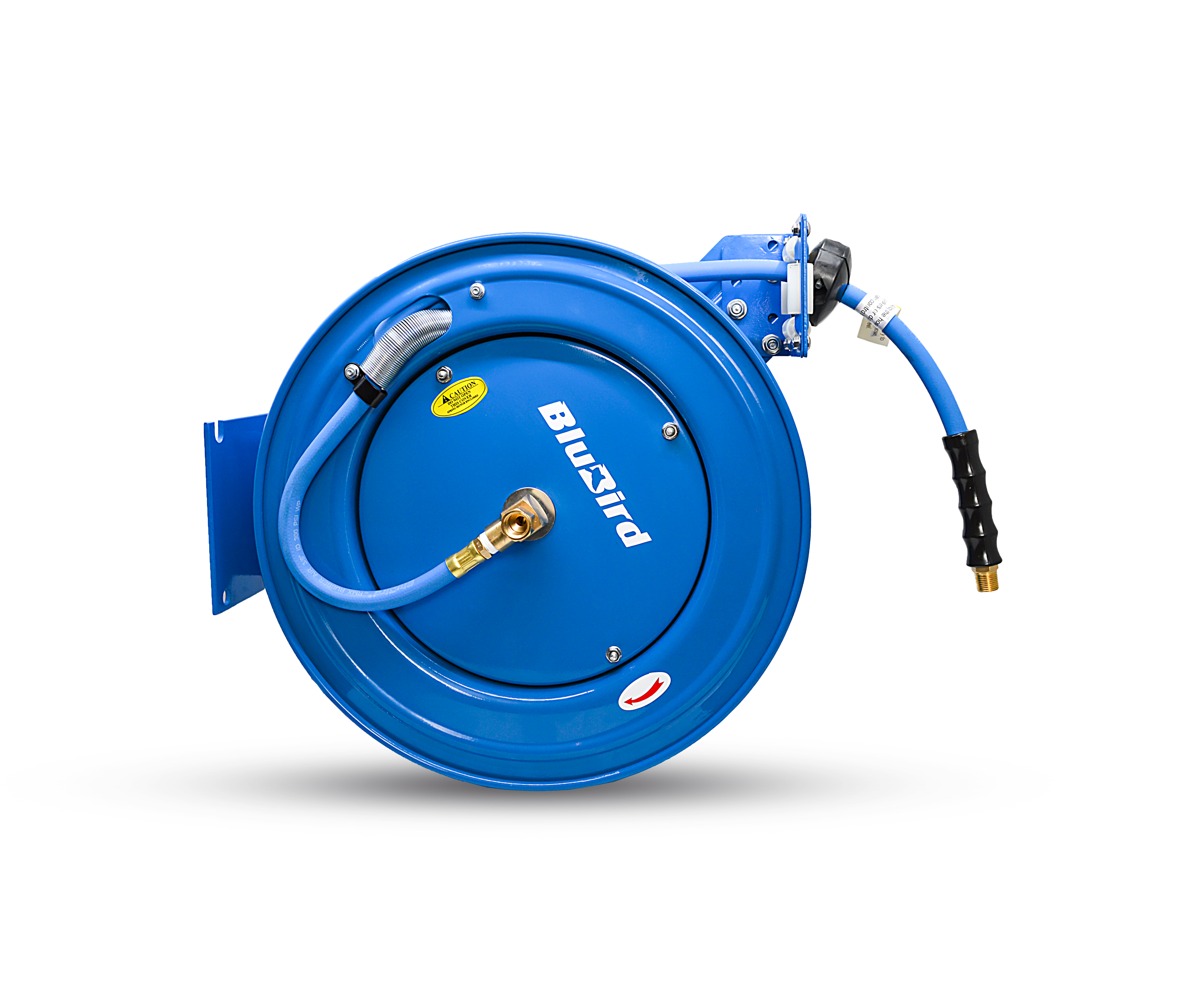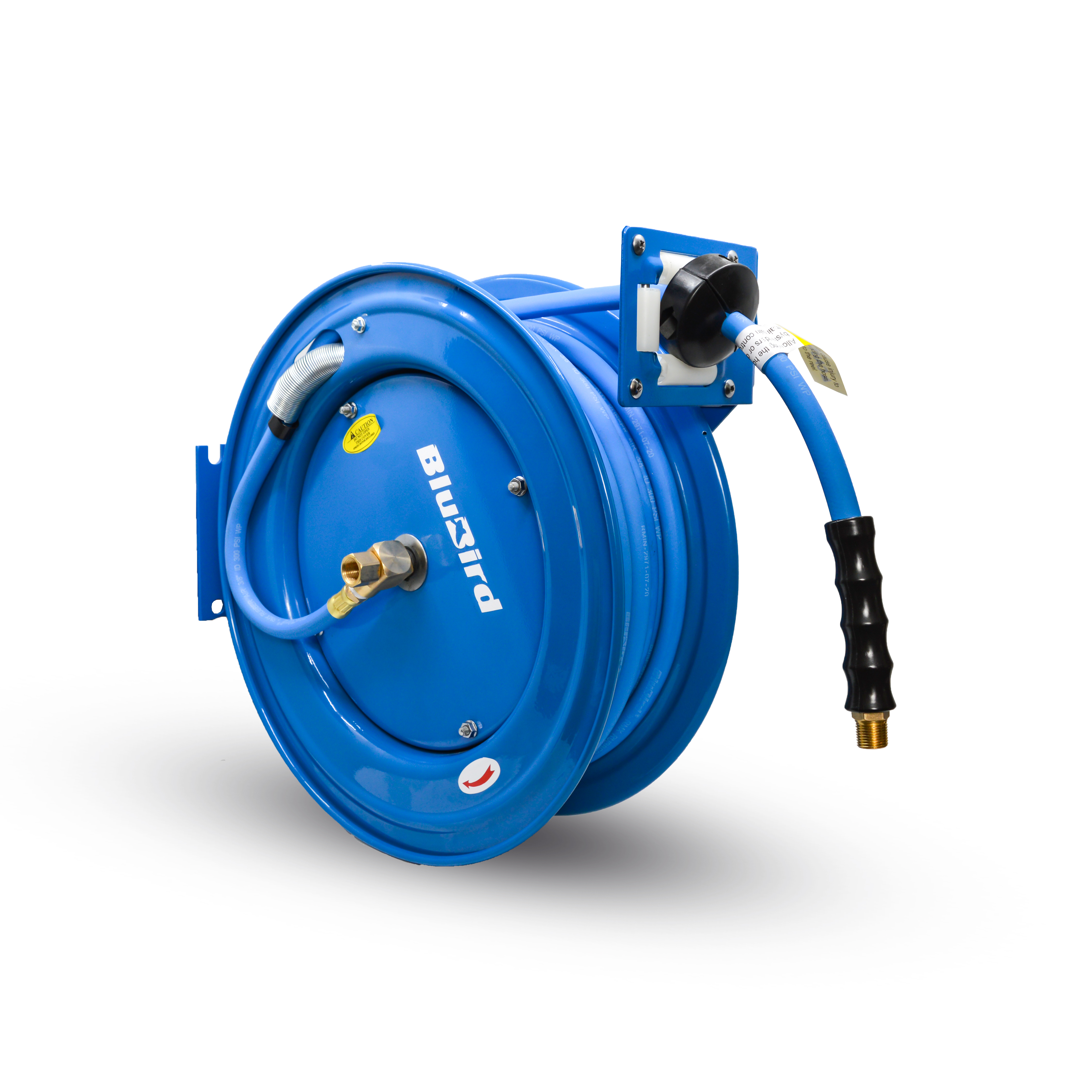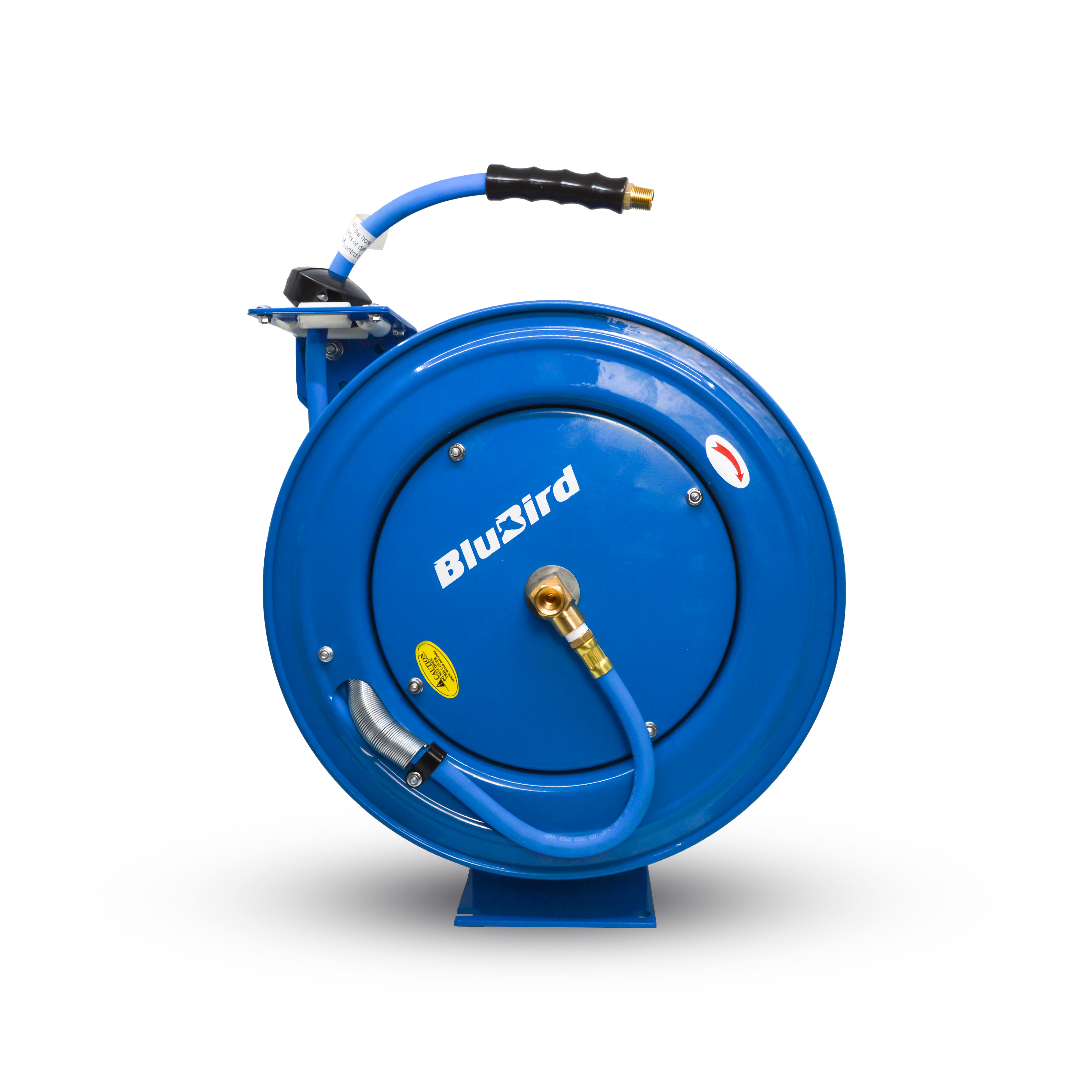 Blubird luftslangvinda 3/8" 15m kompaktvinda singelarm Blubird luftvinda är konstruerad med pulverlackerat 18 gauge kraftigt stål och har 12 pt. spärrlåsmekanism. Den kommer med den lättaste, starkaste och mest flexibla blubird luftslang.