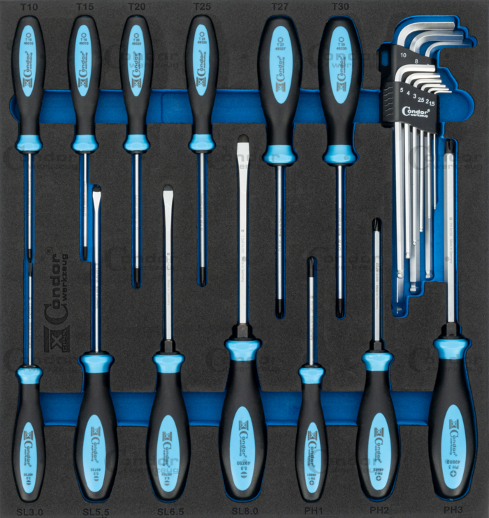 Skruvmejsel och vinkelnyckel Set i Foam 2/3, 22 delar.