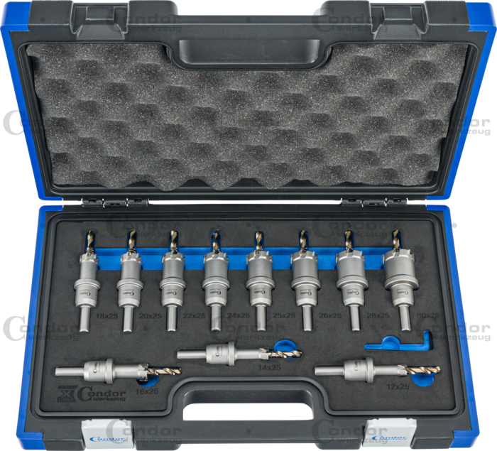| Storlek | Hålsågssats, hårdmetall, planskärande, 11 st, ø 12-30 mm |