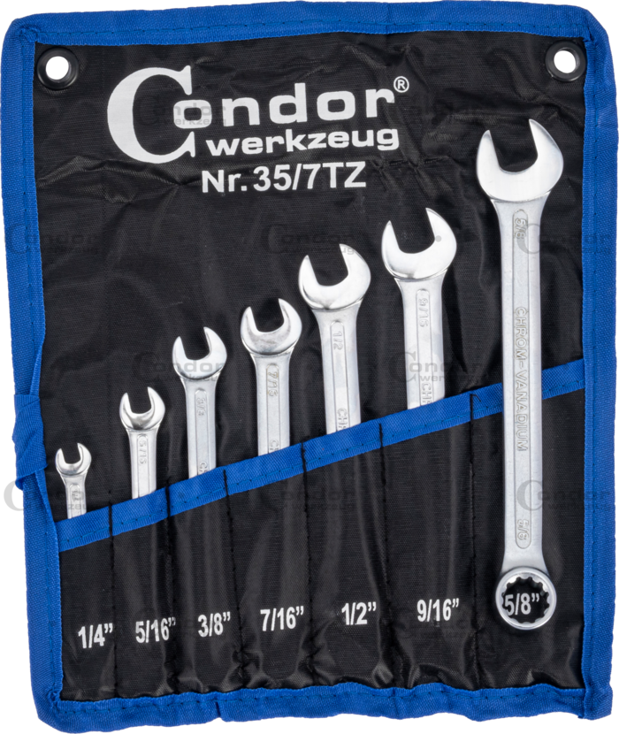 Detta 7-delars U-ringnyckelset täcker tumstorlekar från 1/4" till 5/8", vilket gör det användbart för arbete på maskiner, fordon och annan utrustning där tumstandard förekommer.