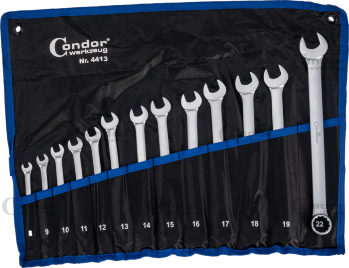 U-Ringnyckel Set, 13 delar., lång, 8-22 mm
