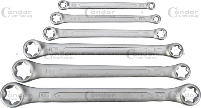 Ringnyckel Set, 6 delar, torx E6-24 för service och montage där E-Torx-fästen används, exempelvis inom fordons- och verkstadsarbete.