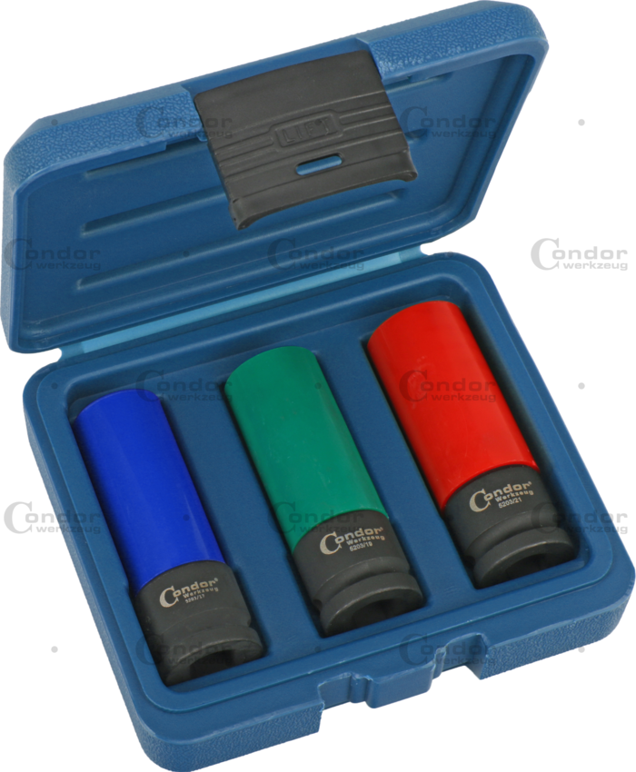Hjulmutter Hylsa Set, 3 delar., 1/2", magnetisk, 6-kant 17-21 mm