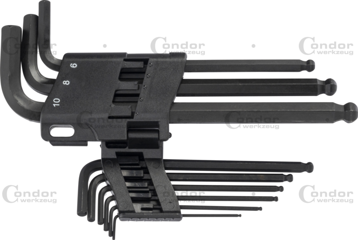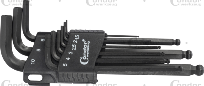 Vinkelnyckel med kula Set, 9 delar., insex 1.5-10 mm