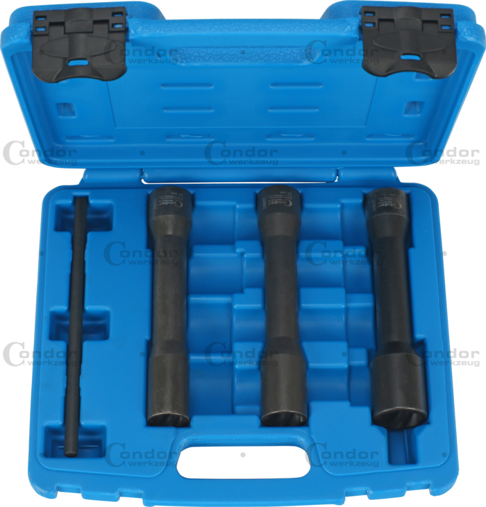 Specialhylsor, vriden profil, 4 delar., 1/2", 150 mm, 17-21 mm för lossning skadade muttrar och bultar.