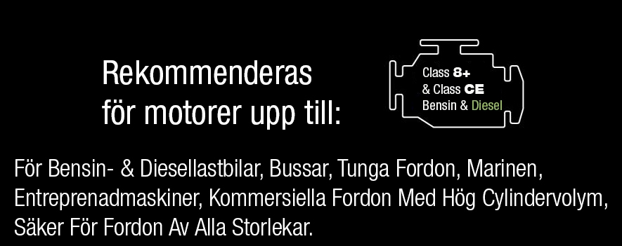 Rekommenderas för motorer upp till: Class 8+ & Class CE bensin & Diesel