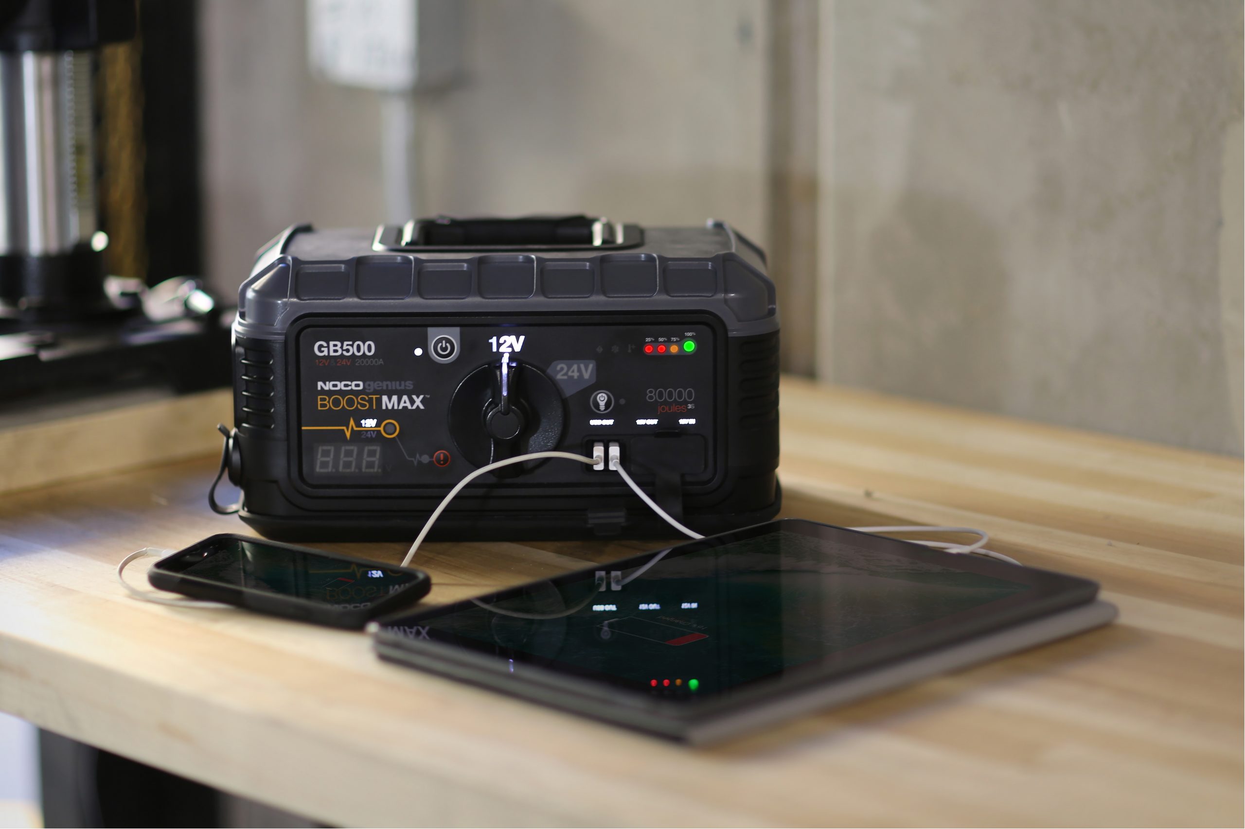 GB500 är lätt och smidig men mycket kraftfull 12-24V Litium-Ion booster som levererar 20000 Amp. Den har en patenterad säkerhetsteknik som ger gnistskyddad anslutning och förhindrar felkoppling på batteripolerna. Vilket gör den enkel och säker att använda. Den kan även användas som strömkälla till alla enheter med 12V eller USB laddning. Laddas via USB-kabel (ingår). Nätadapter ingår ej. Designad för maskin, lastbil, bil, och båt m.m. Stora bensin och dieselmotorer.