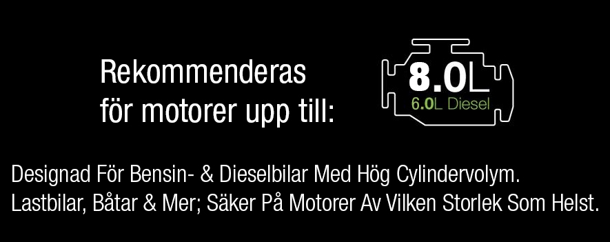 Rekommenderas för motorer upp till: 8,0 liter bensin & 6,0 liter diesel