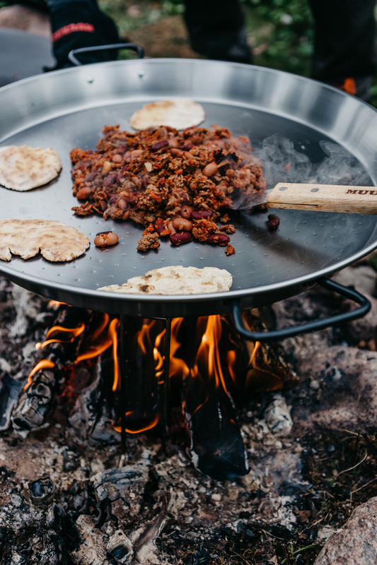 Paellapanna av kallvalsat stål. Med platt botten och kant som håller maten på plats. Perfekt för gasolbrännare eller öppen eld. Elegant panna som även kan användas till servering. Övre diameter 40 cm, botten 35 cm. Tål ej diskmaskin.