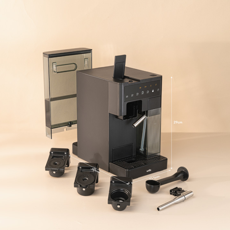 Volo Multi är en multifunktionell och mångsidig kaffekapselmaskin som är designad för att ge dig en perfekt kopp kaffe med bara ett knapptryck. Den kommer med tre adaptrar som är kompatibla med Nespresso-kapslar* Dolce Gusto-kapslar och espressomalt kaffe. Volo Multi kombinerar stil, funktionalitet och enkelhet för att passa alla kaffedrickares behov. Njut av perfekt kaffe på enklast möjligaste sätt!