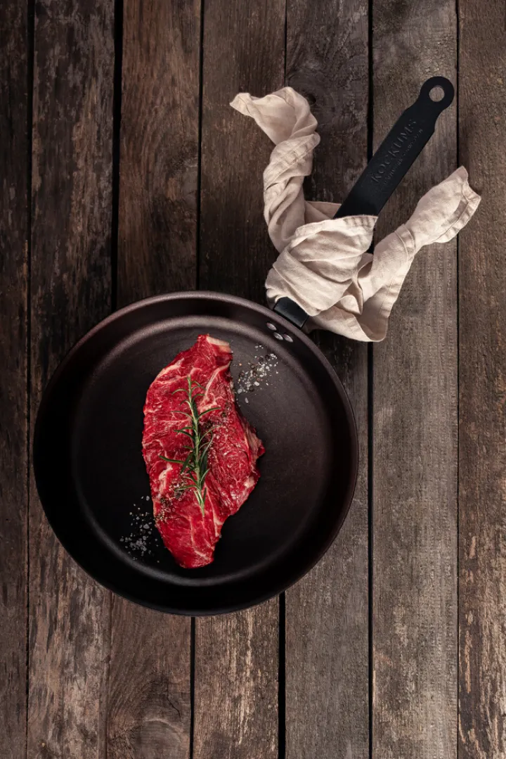 Stekpannan tål höga temperaturer och sprider värmen jämnt och effektivt, vilket är perfekt för stekning och rostning. Den fungerar på alla typer av värmekällor och går också bra att använda i ugn upp till 200°. Det svartlackerade handtaget har en präglad Kockumslogga samt hål för upphängning.