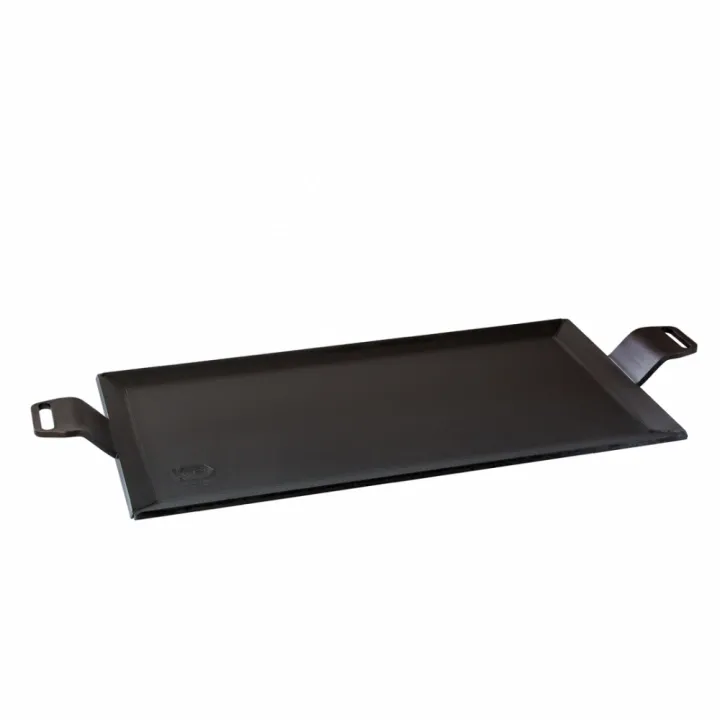 En mångsidig och gedigen panna i samma kolstål som stekbordet. Förinbränd med vegetabiliska oljor, klar att användas direkt. Tål höga temperaturer, sprider värmen jämt och fungerar på alla värmekällor – även i ugn. Dubbelhandtag gör den enkel att hantera och lika användbar för stekning som bakning.