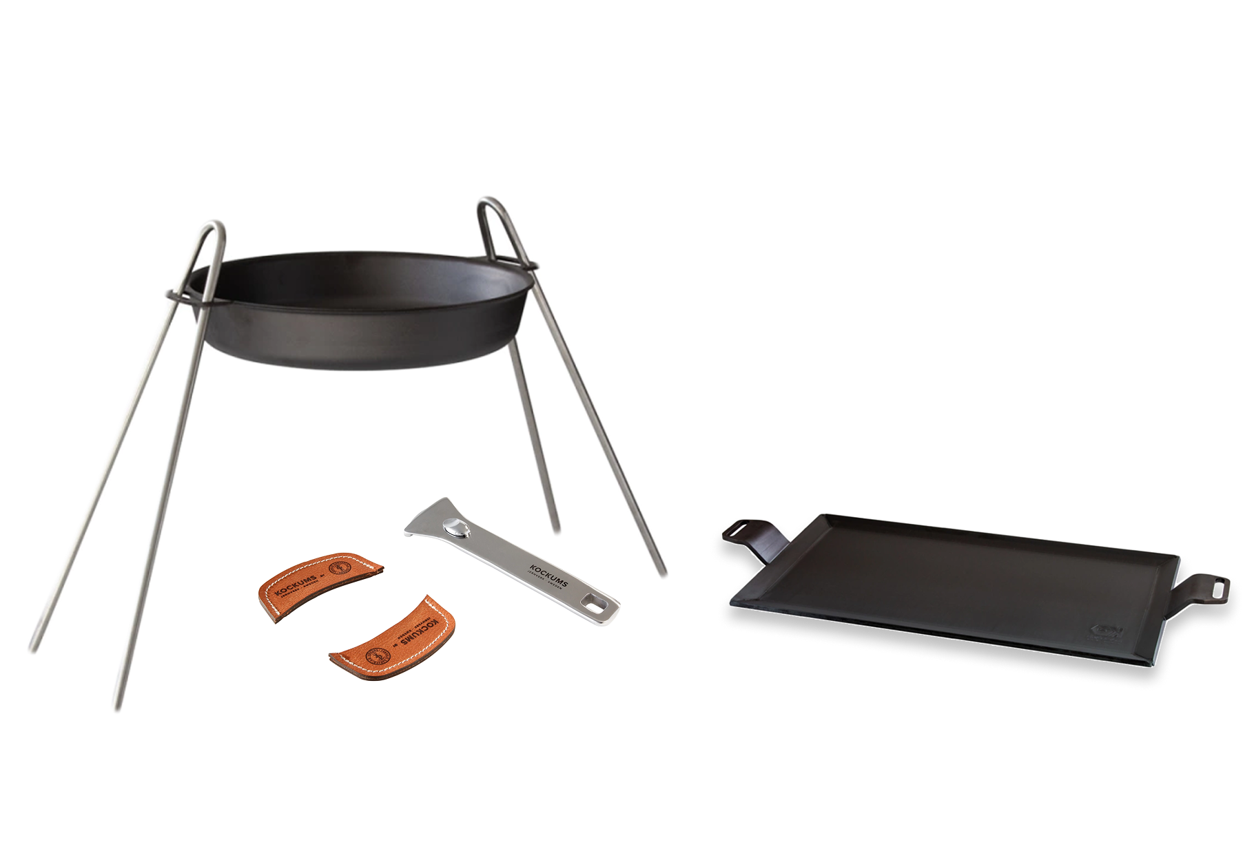 Tillverkad i rostfritt stål från Anderstorp. Gör det möjligt att använda Kockums stekbord och formar direkt över öppen eld – perfekt för matlagning i naturen eller vid grillplatsen.