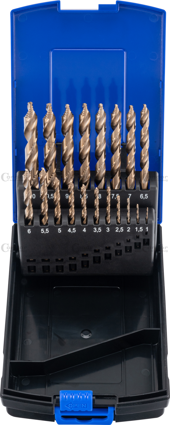 | Storlek | Spiralborr Set, stegspets, HSS-E Cobalt 5%, 19 delar., 1-10 mm |