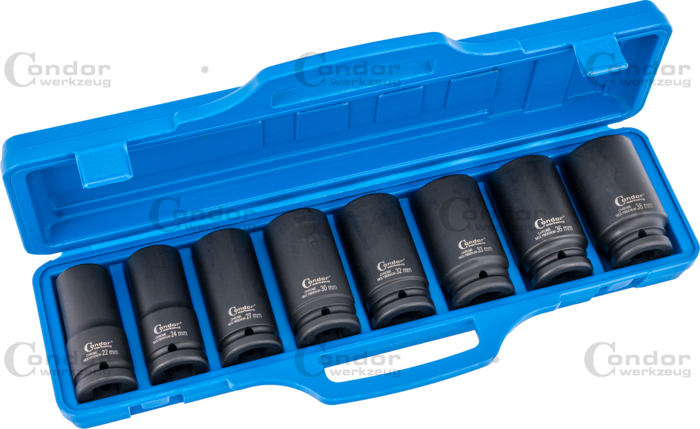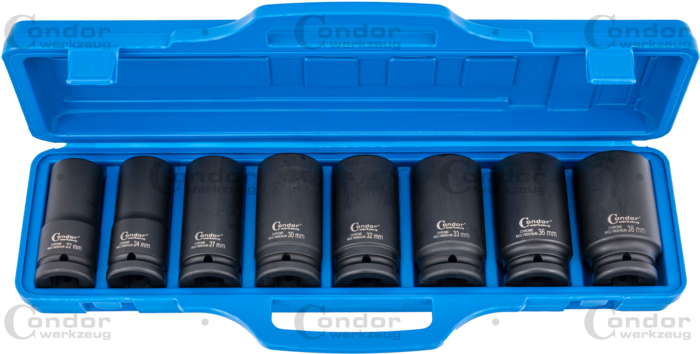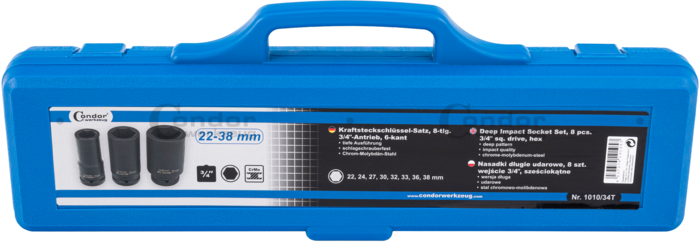 Djup Krafthylsa Set, 8 delar., 3/4", CrMo, 6-kant 22-38 mm
