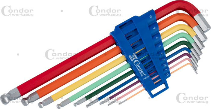 Vinkelnyckel Set, 9 del., färgkodad, Insex 1.5-10mm